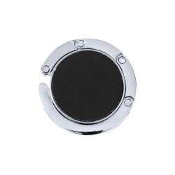 Porte sac pliable en métal avec pastille en similicuir de couleur vive. Présenté en étui individuel avec intérieur mousse.