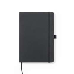 Bloc-notes en similicuir avec une élégante finition noire. Avec couvertures rigides, marque-pages et élastique assorti. Intérieur avec 100 feuilles disposées en 1 ligne et porte-stylo (stylo non inclus).