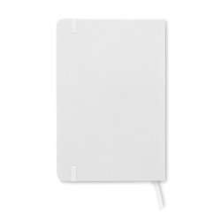 Carnet A5 avec couverture rigide en RPET 600D. Reliure. 160 pages lignées en papier recyclé (80 feuilles). Bande élastique de fermeture et ruban marque-page assortis.