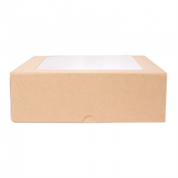 Dimensions pratiques de 23 x 23 x 7,5 cm. La fenêtre permet de mettre en valeur vos délicieuses pâtisseries tout en les protégeant.