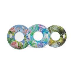 1x bouée gonflable géante décorée motifs plantes avec poignées. Matière 100% vinyle. Disponible en 3 modèles mélangés selon arrivage (voir photo à titre indicatif). Diamètre 96cm environ. Conditionnée en boite carton couleurAttention !! Ceci n'est pas un dispositif de sauvetage ! Ne pas utiliser d'hélium ou d'autre gaz ! Ne convient pas aux enfants de moins de 36 mois, danger d'avaler des petites pièces ! A n'utiliser qu'en eau ou l'enfant à pied et sous la surveillance d'un adulte ! Tenir loin du feu et de toute autre source de chaleur !