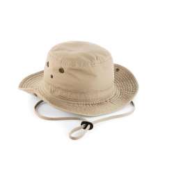 Taille ajustable par élastique à lintérieur du chapeau. Cordon extérieur réglable par boucle cuir. Pressions sur chaque côté pour relever le chapeau. Conforme BS 8466. Protection contre le soleil - UPF50+. Parfait pour la sérigraphie et la broderie.