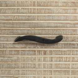 Commode 6 tiroirs Ajay en bois Design asymétrique. Tiroirs rectangulaires posés les uns sur les autres. 6 poignées différentes. Diverses gravures sur la face avant. Effet vieilli. Cirer régulièrement et nettoyer à l'aide d'un chiffon en microfibre.