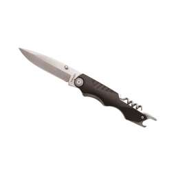 Le manche combine aluminium et acier inoxydable pour une prise en main robuste. Ce couteau est équipé d'un décapsuleur intégré et d'un tire-bouchon à 4 spirales, surpassant les modèles standards à 3 spirales.