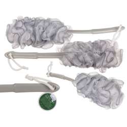 Confortable pour laver le dos et tout le corps. Une luxueuse rondelle en maille, parfaite pour les soins quotidiens. La poignée est en plastique, la rondelle est en maille douce et délicate. Il a des poignées pour accrocher. Masse parfaitement le corps et exfolie les cellules mortes de la peau. La conception unique est un avantage.