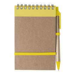 Carnet à spirale en carton Emory, idéal pour vos prises de notes. Ce carnet pratique contient environ 70 feuillets lignés. Il est accompagné d'un stylo bille à mine bleue, également recyclé. Parfait pour les commandes en gros, ce produit répondra à tous vos besoins professionnels ou personnels.