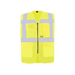 Gilet de sécurité multifonctionnel avec poches. Doté de deux bandes réfléchissantes de 5 cm de large autour du corps et sur les épaules, ce gilet assure une visibilité optimale. Conforme à la norme EN ISO:20471, il garantit une sécurité accrue dans tous vos environnements de travail.