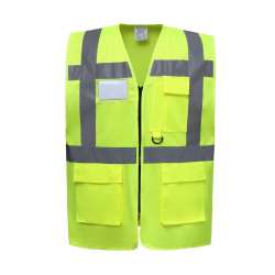 Gilet multi-fonction haute sécurité : la solution idéale pour vos besoins en gros. Ce gilet est équipé de 2 bandes verticales et 2 bandes horizontales réfléchissantes de 5 cm, assurant une visibilité maximale.