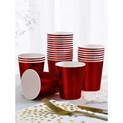 Découvrez notre lot de 10 gobelets en carton rouge brillant de 200ccm.
