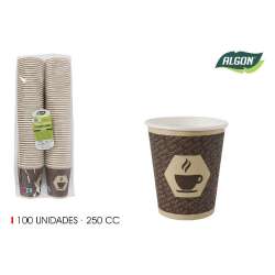 Lot de 100 gobelets à café en carton 250ccm coton.