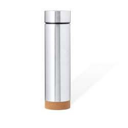 Thermos en acier inox de 470ml de capacité avec base en liège. Avec double paroi pour une meilleure et plus durable conservation de la température. Infuseur inclus et système douverture facile à fileter. Disponible dans une gamme variée de couleurs et présenté dans une boîte de conception kraft attrayante.Élaboré à partir déléments végétaux pour encourager lutilisation de matières premières naturelles et réduire les émissions polluantes.