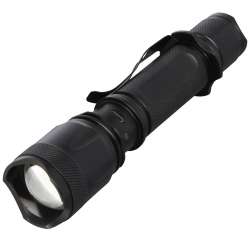 Avec une puissance de 5 W, cette lampe émet 300 lumens pendant 3 heures. Son faisceau atteint jusqu'à 200 mètres et propose 5 modes d'éclairage : fort, moyen, faible, stroboscopique et SOS.