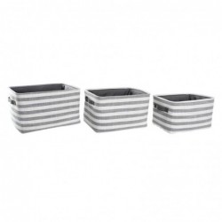 Vous voulez donner une touche d'originalité à votre maison ? Vous y arriverez grâce au Set de basket DKD Home Decor Gris Rayures Coton (42 x 32 x 25 cm) (3 Pièces).
