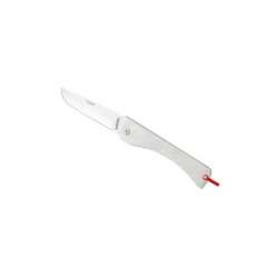 Couteau pliant ultra-fin avec lame en acier inoxydable 420. Ce modèle est équipé d'une bélière ingénieuse qui verrouille la lame en position fermée et s'attache facilement à votre porte-clés.