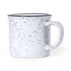Tasse en céramique dune capacité de 350ml avec un design vintage. En combinaison dextérieur dans des couleurs tachetées et intérieur assorti, avec bordure noire. Présenté en finition kraft boîte individuelle.