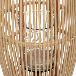 Lanterne Fit H72cm Forme elliptique, esprit nature. Socle en matière résistante. Structure vannerie en bambou. Bougeoir sur socle en bambou monté sur support tubulaire. Col en fer avec 2 anneaux de fixation pour l'anse. Poignée en corde de chanvre avec embouts tube et accroches. À poser ou à suspendre.