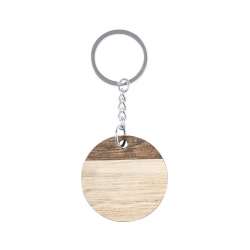 Porte-clés rond, en bois naturel et avec une finition bicolore originale. Grande surface de marquage, avec anneau et chaîne en métal et badge Made In Europe.