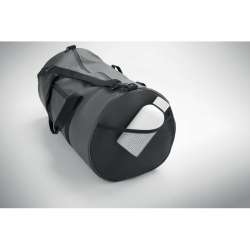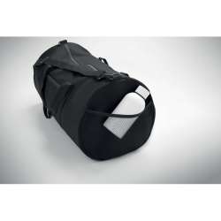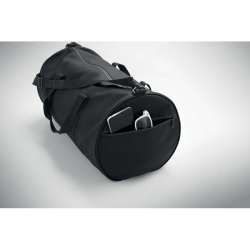 Sac de sport en polyester 600D RPET avec revêtement PU. Poche frontale zippée. Doublure intérieure en polyester 210D RPET. 1 compartiment latéral zippé / 1 compartiment latéral en filet. Poche intérieure zippée.