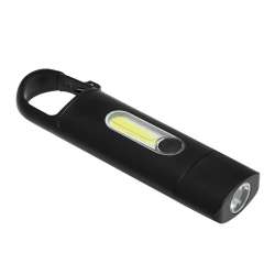 Lampe de poche rechargeable BRIGHT LIGHT : LED frontale avec 3 modes d'éclairage (100%, 75%, clignotant), champ COB avec 10 LED puissantes sur le dessus, batterie lithium puissante (200 mAh), incluant un câble de chargement USB avec connecteur TYP C (environ 30 cm), avec mousqueton pour fixation (le mousqueton n'est PAS adapté comme sécurité lors de l'escalade), bouton marche/arrêt, dans une boîte
