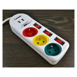 Rallonge 3 prises USB x 2 2,4 mA 1,5 M