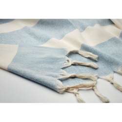 Fabriquée à partir de tissus recyclés, cette fouta allie confort et durabilité. Composée de 45 % de coton recyclé et de 55 % de polyester recyclé, elle offre une douceur agréable au toucher.
