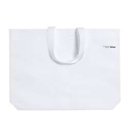 Sac nature line, en non-tissé recyclé de 70g/m2. De fabrication européenne, avec une finition thermoscellée, avec soufflet, de longues poignées et un éco distinctif / made in sur le sac.