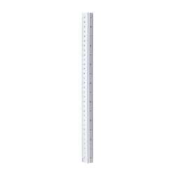 Kutch en aluminium de forme triangulaire de 30 cm. Echelles 1:20/1:25/1:25/1:50/1:75/1:100.Avec une face unie pour le marquage. Présenté en boîte individuelle.