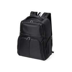 Sac à dos de qualité supérieure en Nyon 600D résistant avec une finition noire. Compartiment principal avec fermeture zippée assortie et double poignée. Comprend 3 poches extérieures et 2 poches latérales, toutes avec fermeture éclair. Poignée, dos et bretelles rembourrés, également réglables. Intérieur avec compartiments rembourrés pour un ordinateur portable jusqu'à 17 pouces et une tablette jusqu'à 12 pouces. Accessoire arrière pour le réglage du chariot.