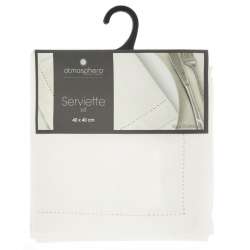 Lot de 4 serviettes de table carrées Chambray Biais avec finition ajourée tout autour. Dimensions de 40x40 cm. Possibilité de les laver en machine. À associer avec une nappe Atmosphera.