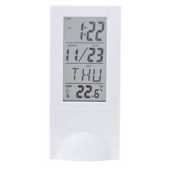 Équipée d'un capteur de température, elle affiche l'heure (12/24), le calendrier, l'alarme et le jour de la semaine.