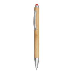 Stylo TOUCHY: avec revêtement en bambou, mécanisme pression, pointe décran tactile colorée pour lutilisation de smartphones et de tablettes, écriture bleue