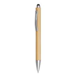 Stylo TOUCHY: avec revêtement en bambou, mécanisme pression, pointe décran tactile colorée pour lutilisation de smartphones et de tablettes, écriture bleue