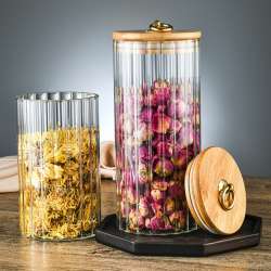Sucrier, récipient rainuré avec couvercle en bambou.