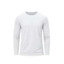 T-shirt à manches longues pour adultes de couleur blanche, doux et agréable au toucher en jersey lisse 100% coton, 160 g/m². Fabriqué en tissu tubulaire, avec encolure ronde en côte 1x1 et couture renforcée assortie en blanc.