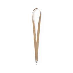 Tour de cou ligne nature en carton recyclé résistant. Avec mousqueton métallique rotatif.