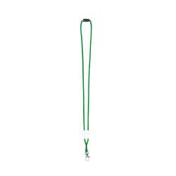 Lanyard cordon en polyester résistant et doux aux couleurs variées et lumineuses. Avec clip de sécurité au cou, mousqueton en métal et pastille centrale pour le marquage.