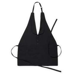 Tablier élégant avec décoration de boutons en matière 100% polyester. Avec tour de cou et sangles de taille réglables.